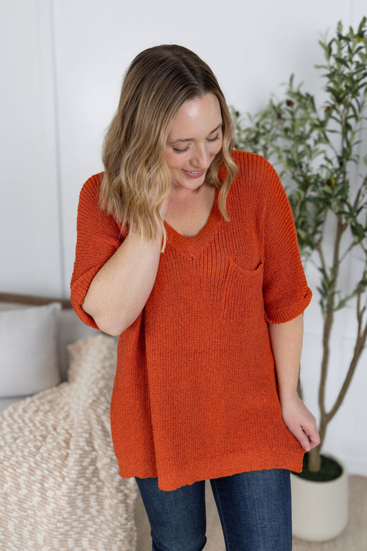IN STOCK Corrine Ribbed Pullover Top - Pumpkin