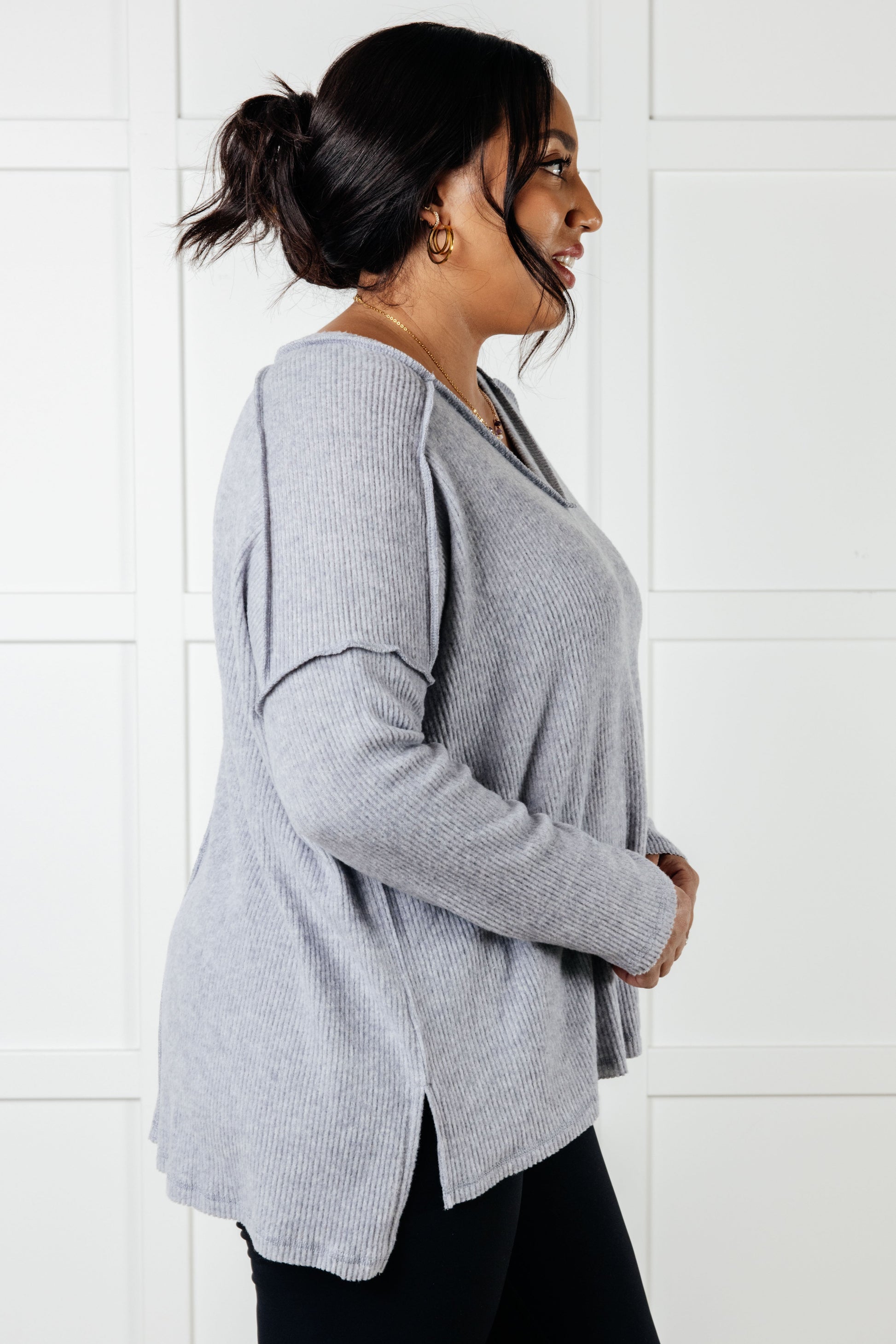 Basically Freezing Brushed Hacci Top in Heather Grey