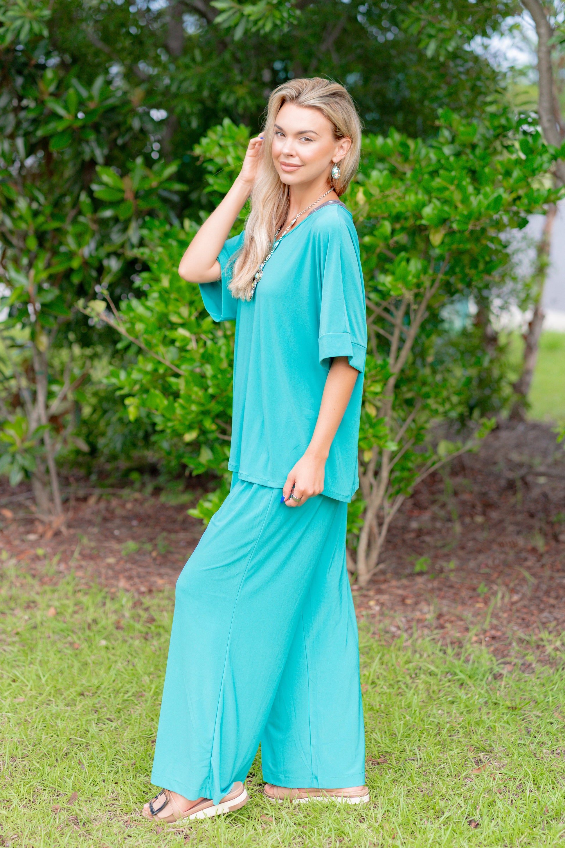 Jump into the dreamy world of the Emerald Mirage Set! Featuring a poncho top that adds a hint of mystery, this set keeps you both comfortable and stylish. Whether you're heading out for a fun night with friends or enjoying a cozy evening at home, let your inner mirage shine bright and playful.