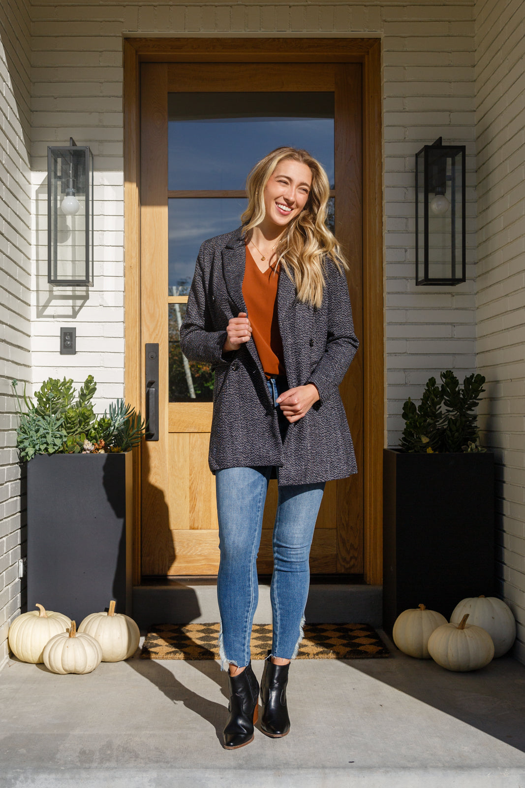 - Chic Upon Arrival Button Down Blazer Jacket In Black