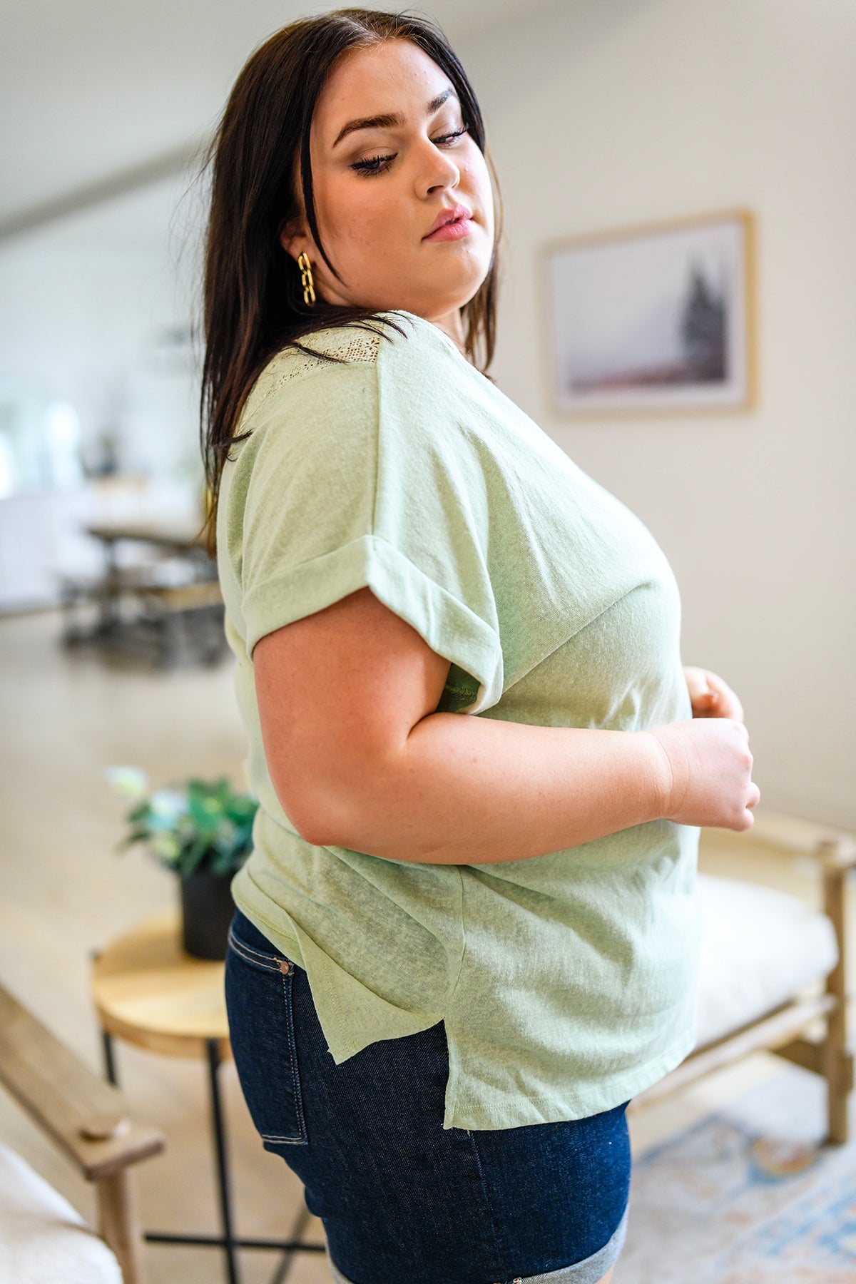 Turn heads in this Found Favorite Lace Detail Top! Crafted from lightweight burnout jersey knit for all-day comfort and dolman sleeve to show off your style. But the real show-stopper is the back of the top with its v-neckline and intricate lace detailing - sure to make you the talk of the town!