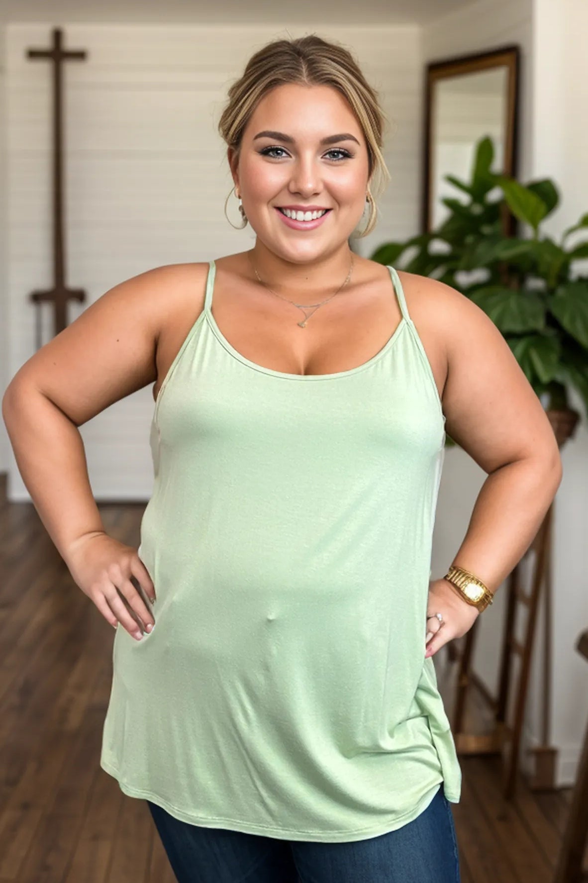 Sip on some style with our Iced Matcha - Tank. This light sage tank features a scoop neck and spaghetti straps for a relaxed fit that's perfect for any occasion. Stay cool and trendy with this playful and refreshing addition to your wardrobe. (No pun intended!)