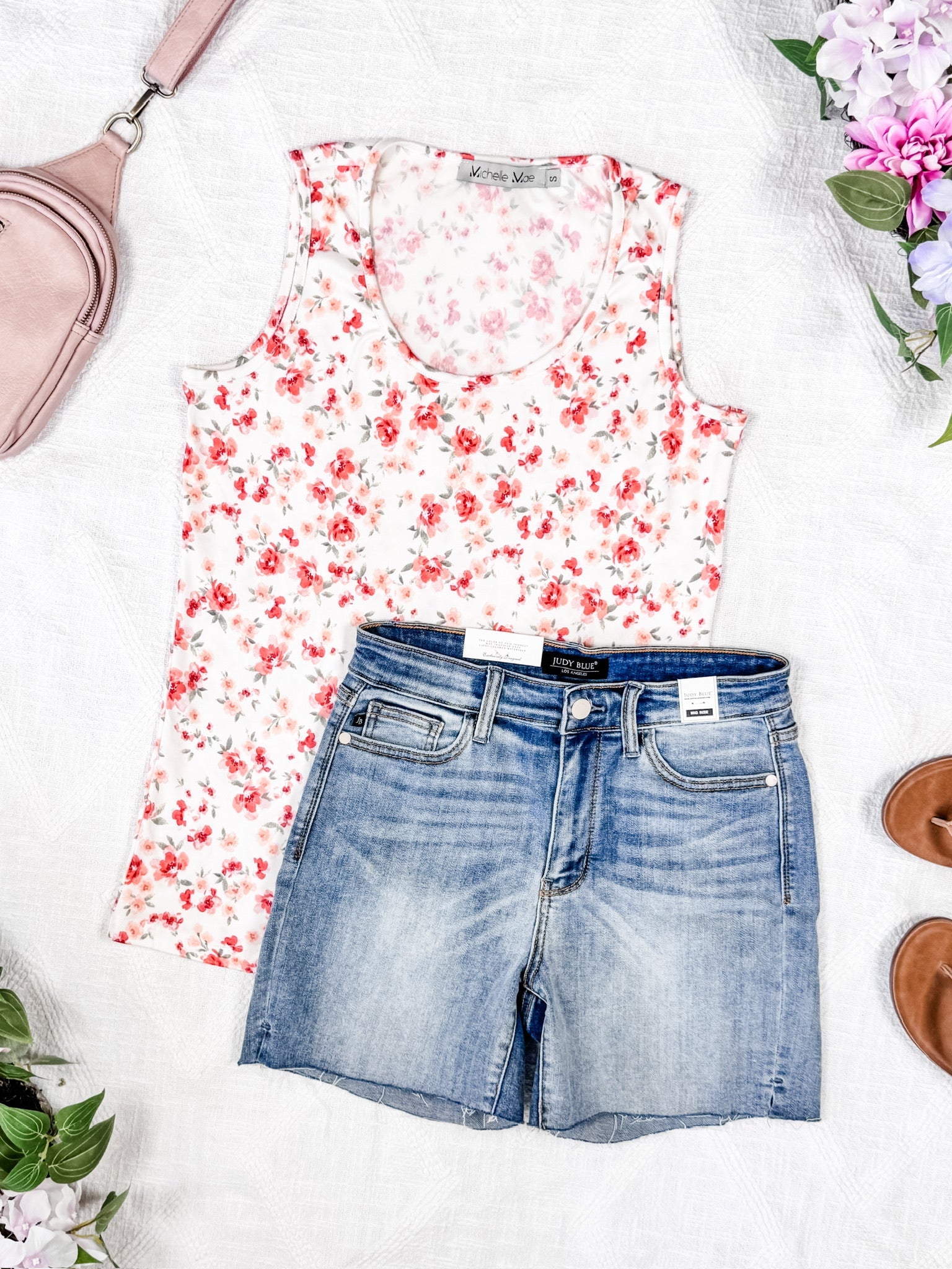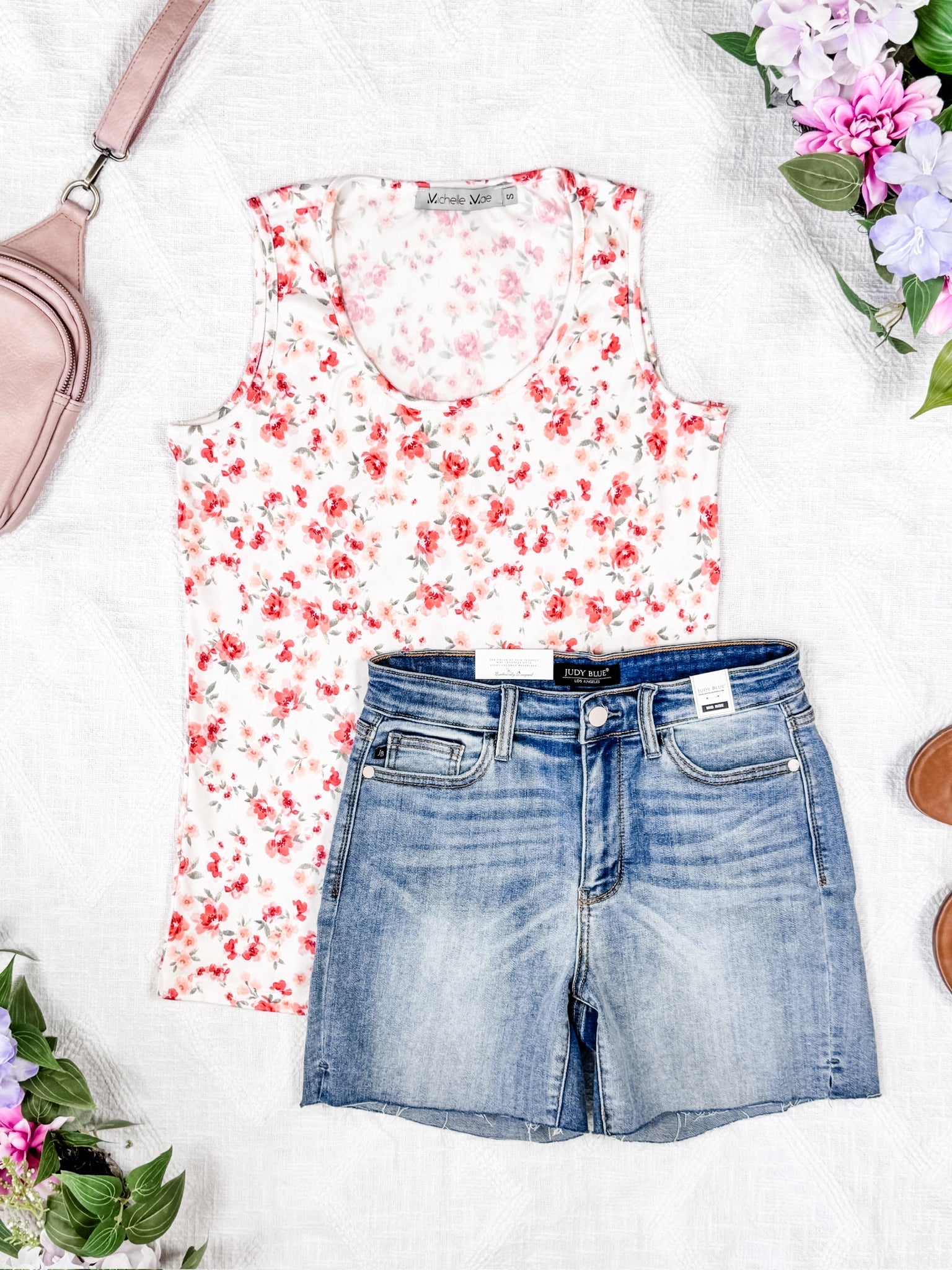 IN STOCK Luxe Crew Tank - Ivory Pink Floral