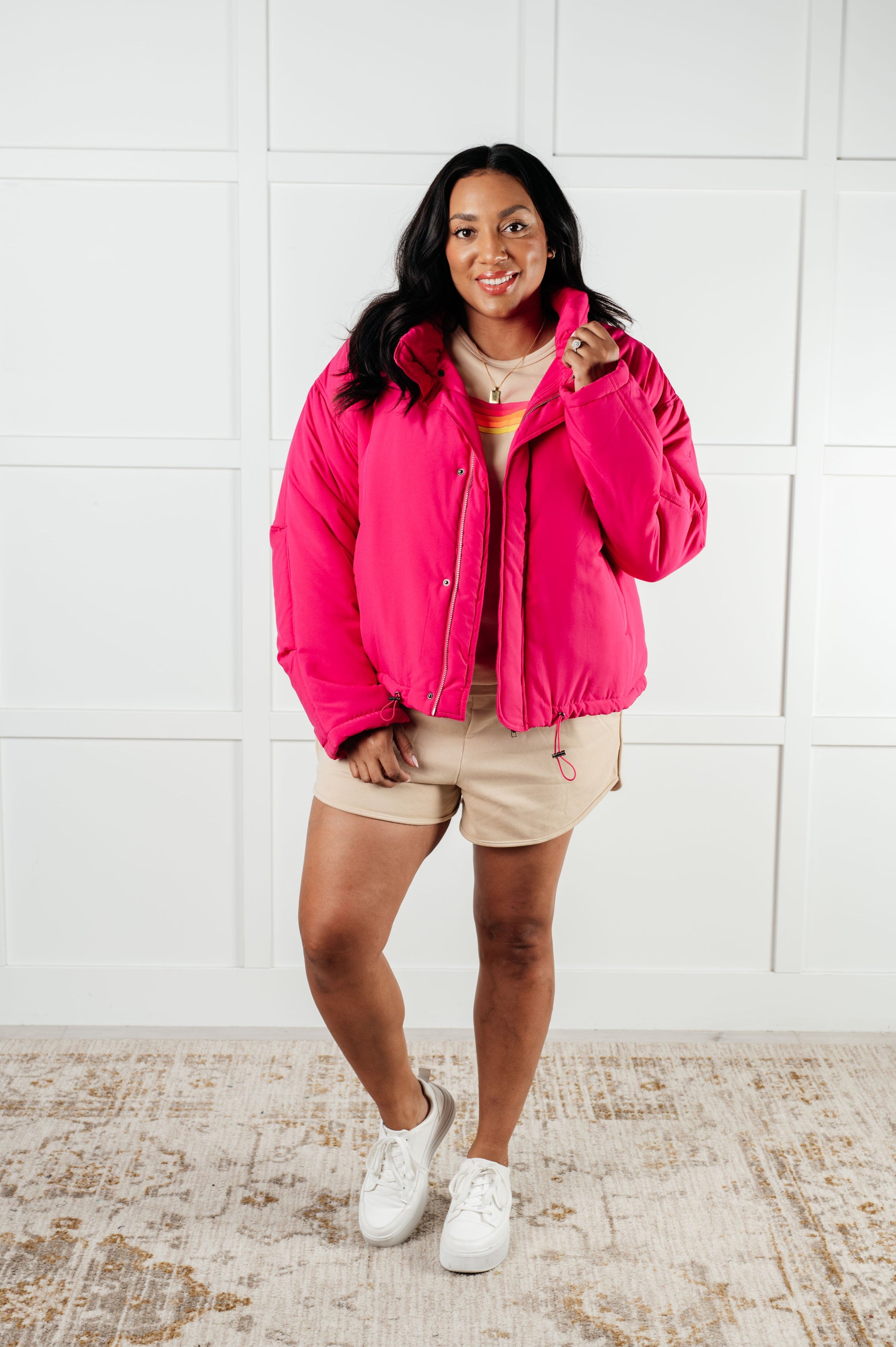 Unleash all the retro vibes with our midweight knit Retro Rainbow Shorts Set in Tan. Featuring a raglan sleeve and round neckline, the top is not only stylish but also comfortable. The fashionable shorts feature banded ribbed details and an elastic waistline. The functional side pockets add a convenient touch, while the contrasting striped applique is sure to turn heads!