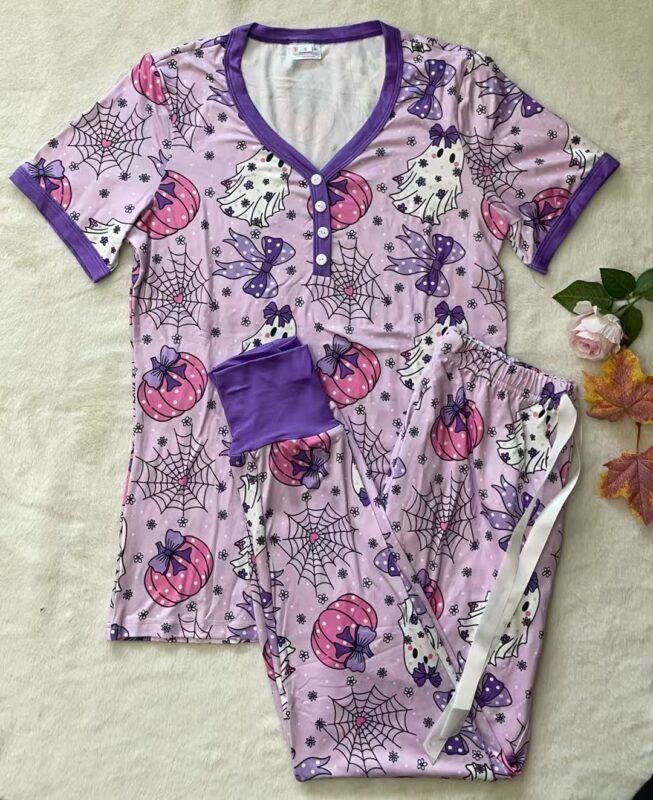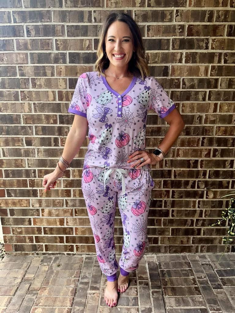 Order now and experience the quality and comfort of Shirley & Stone's Short Sleeve Halloween Pjs!