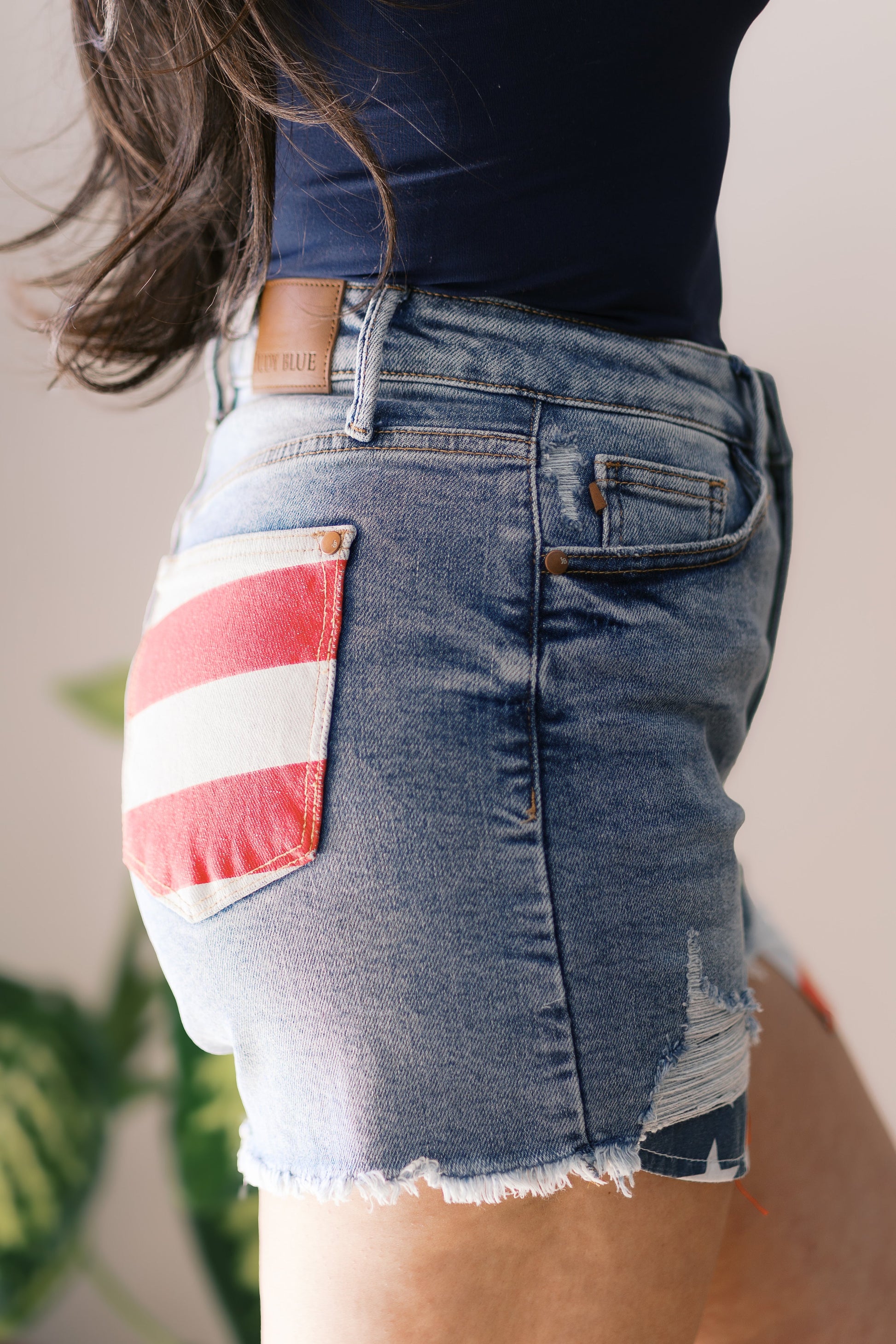 Show off your patriotic side with these Stars & Stripes Judy Blue Shorts! Perfect for summer adventures and holiday celebrations, these shorts feature a playful and quirky design that will make you stand out from the crowd. Made with high-quality fabric for comfort and style. Get ready to rock your red, white, and blue!