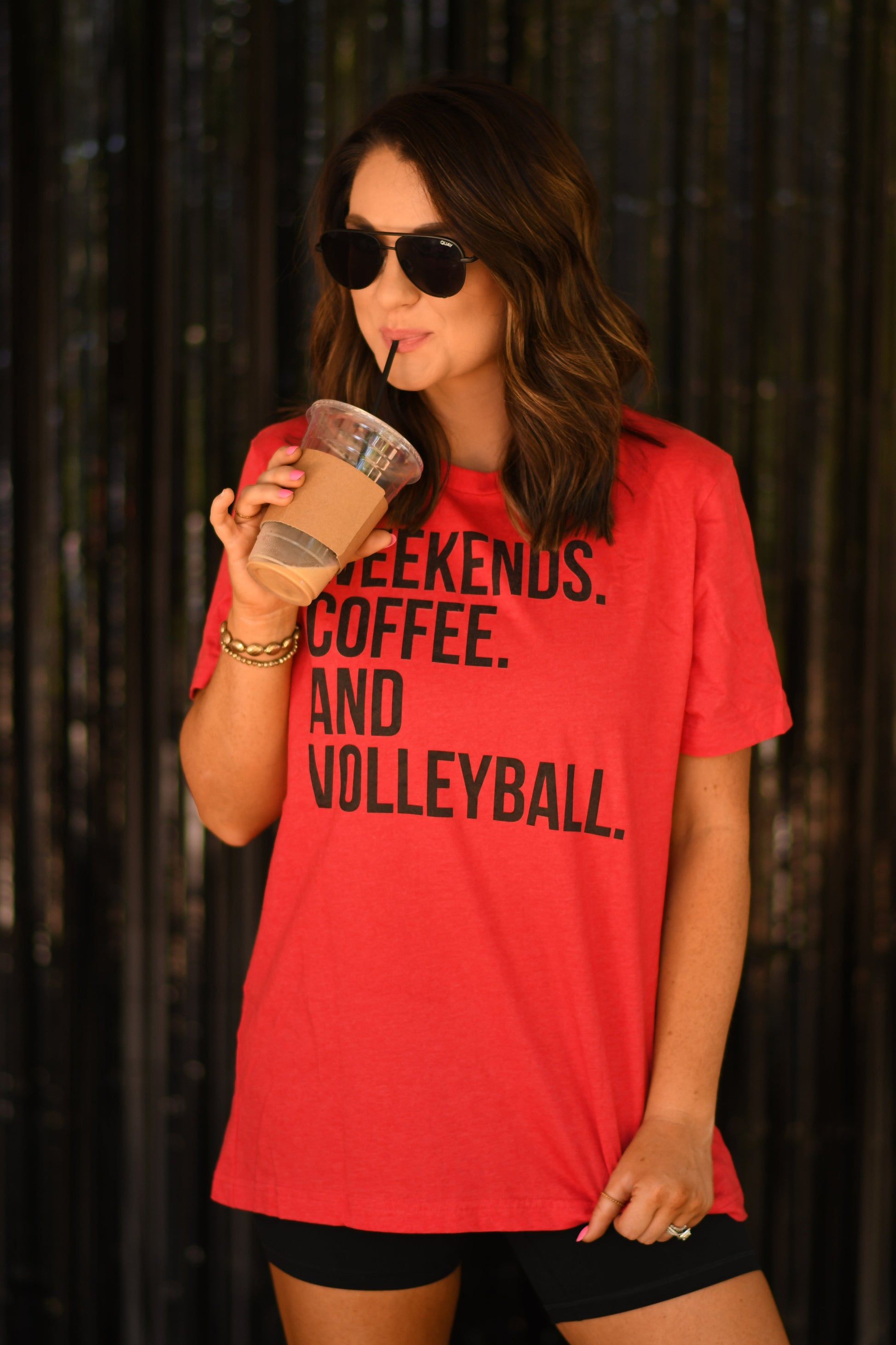 Weekends Coffee And Volleyball Pick Your Color Tee